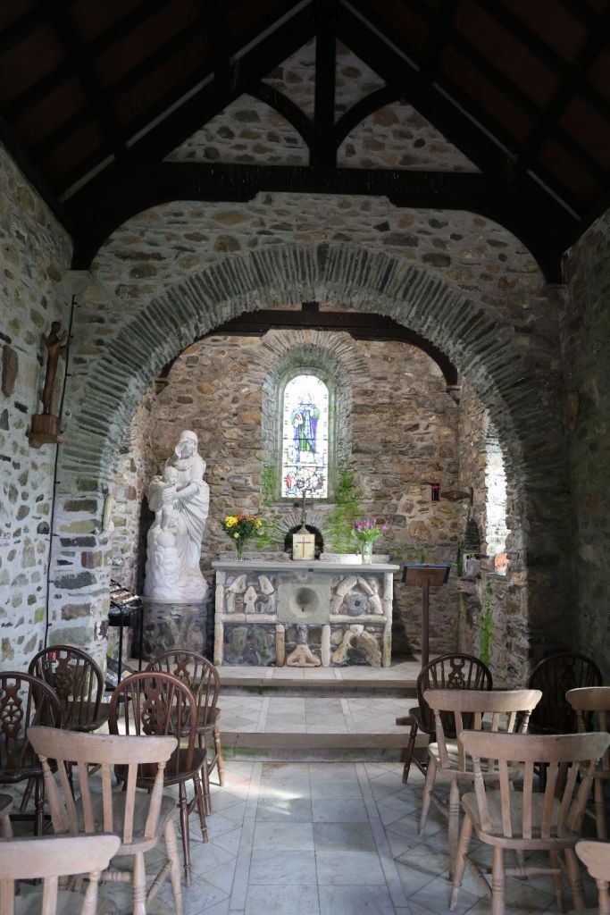 and nearby by was the Chapel of Our Lady & St. Non were we chatted with the owner/caretaker/cleaner/preacher etc who picked up we are Aussie. He was a bit amazed we’d driven from Cardiff and still needed to get to Aberystwyth. Altogether about 188 mile (300km) and 4:15hr drive, just a morning drive for us Aussies!