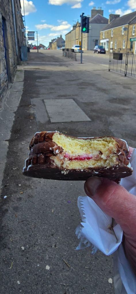 We walked to a Bakery, I had a wagon wheel, not as good as the one at Port Issac (Dr Martin) that I still remember from 2014 trip, I might be short, but I’ve got a long memory! Annette had a coffee which she said wasn’t too bad. On the way back to the car a Scotsman asked if wee needed a wee little help. Said all good and he promptly said Australian. Yes, and have you been there? No, wee too far for me. He asked were wee may be heading. Said Aberdeen. He said don’t, its morbid with the granit buildings. I said what about the sandstone buildings here, they look grey? He just said, they’re old and went on his wee way.