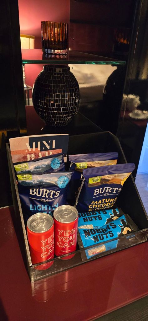 Arriving at our accommodation they said we’ve upgraded you to a Junior Suite as you’re such a lovely couple! Oh thanks. The mini bar is stocked to the hilt and so is the desk tub. But alas, everything is pay-as-you-go, nothing is free. On top of that, there’s no face washers😱. The bathroom fan was running noisily. Take note of this.
