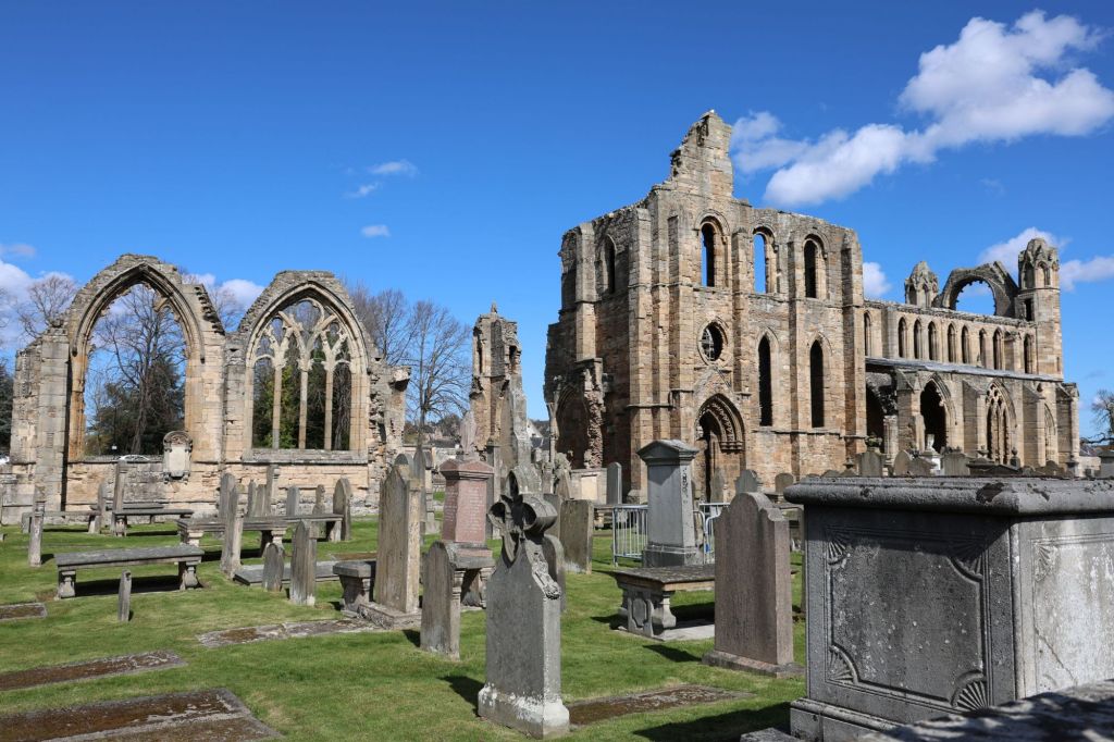 Driving through Elgin Annette spotted a ruined church, so thought a good time to add a bit of juice to the car while sight seeing. Fail, chargers not working. So we drove to the church. They wanted £12 to visit a ruin, so we just walked around the outside.